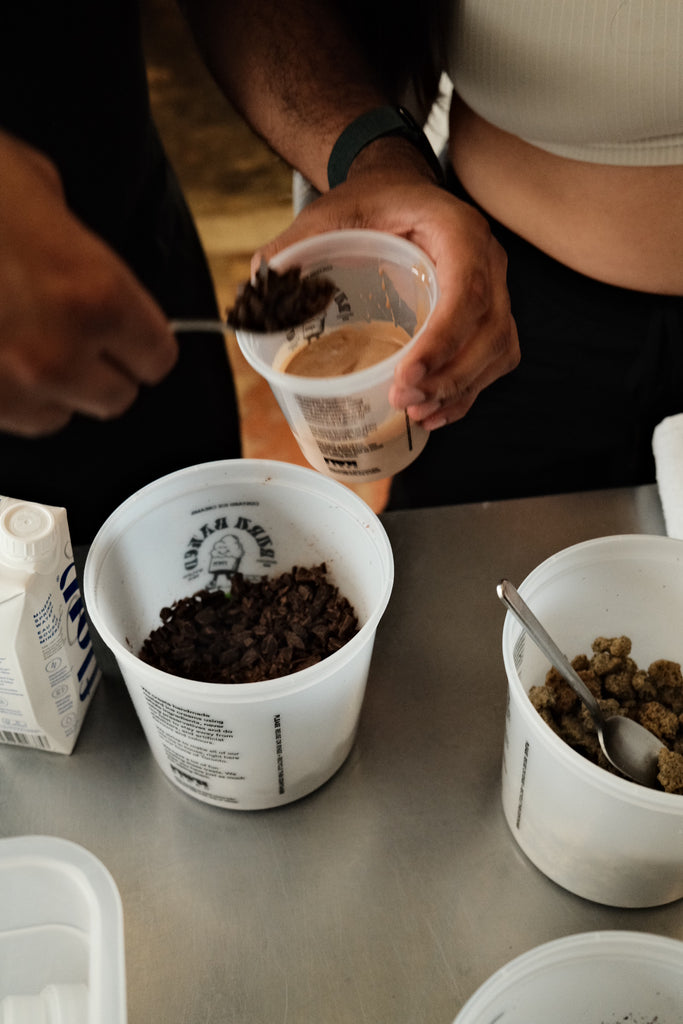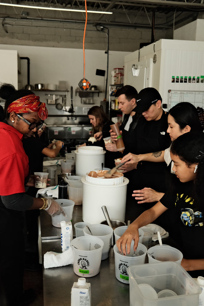 Join Ruru for a hands-on ice cream making workshop. We start the class by churning and filling your own custom pints, using 2 Ruru Baked classic ice cream flavours and a selection of Ruru Baked mixins (or BYO mixins!). While our pints freeze, watch and learn how to create a creamy custard ice cream base and our beloved sponge toffee. Then indulge in a little ice cream tasting of our current flavours and leave with your custom pints, a Ruru Baked keepsake, and a bag of sponge toffee. We encourage questions throughout the whole workshop.